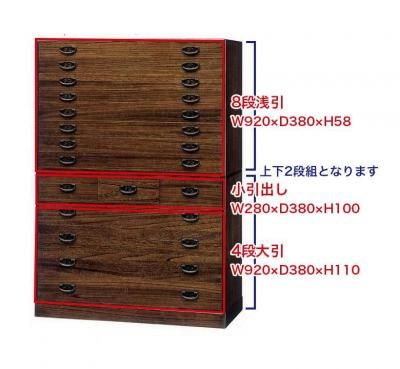 | 商品説明 | 浅い引き出しが着物や帯、またはネクタイ、ベルト、Yシャツの収納にとっても便利! 引き出しを差し替えるだけで衣替えOK ★ 前面宇造り ★ ブラウン色 ★ 2つ重ね ★ 引出し十五杯 |